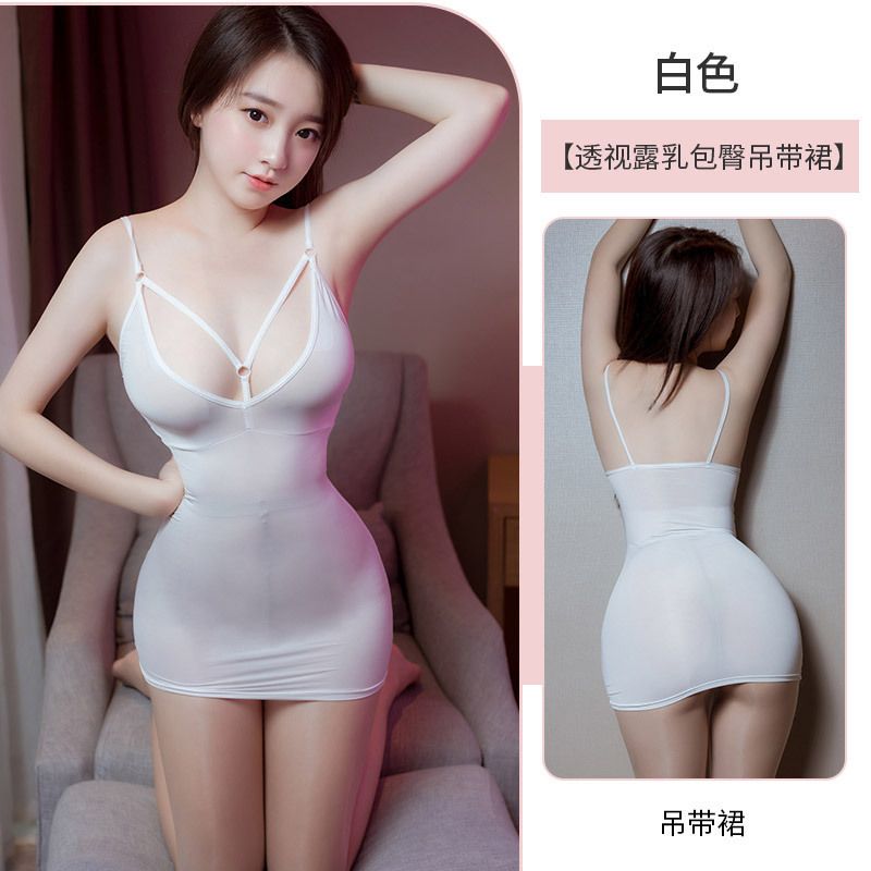 纯情透视露乳吊带包臀裙(白色)